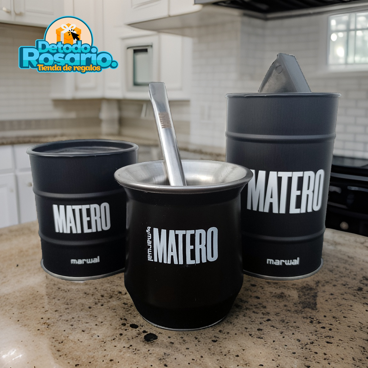 Juego Vertedores + Mate + Bombilla. Linea Matero Negro