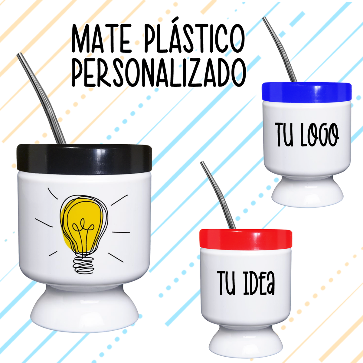 Mate plástico con logo, fotos, frases o diseño a elección.