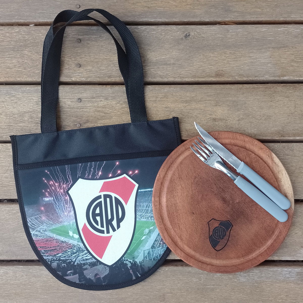 Combo 5 : Funda - Plato Algarrobo (con grabado laser) - Cubiertos