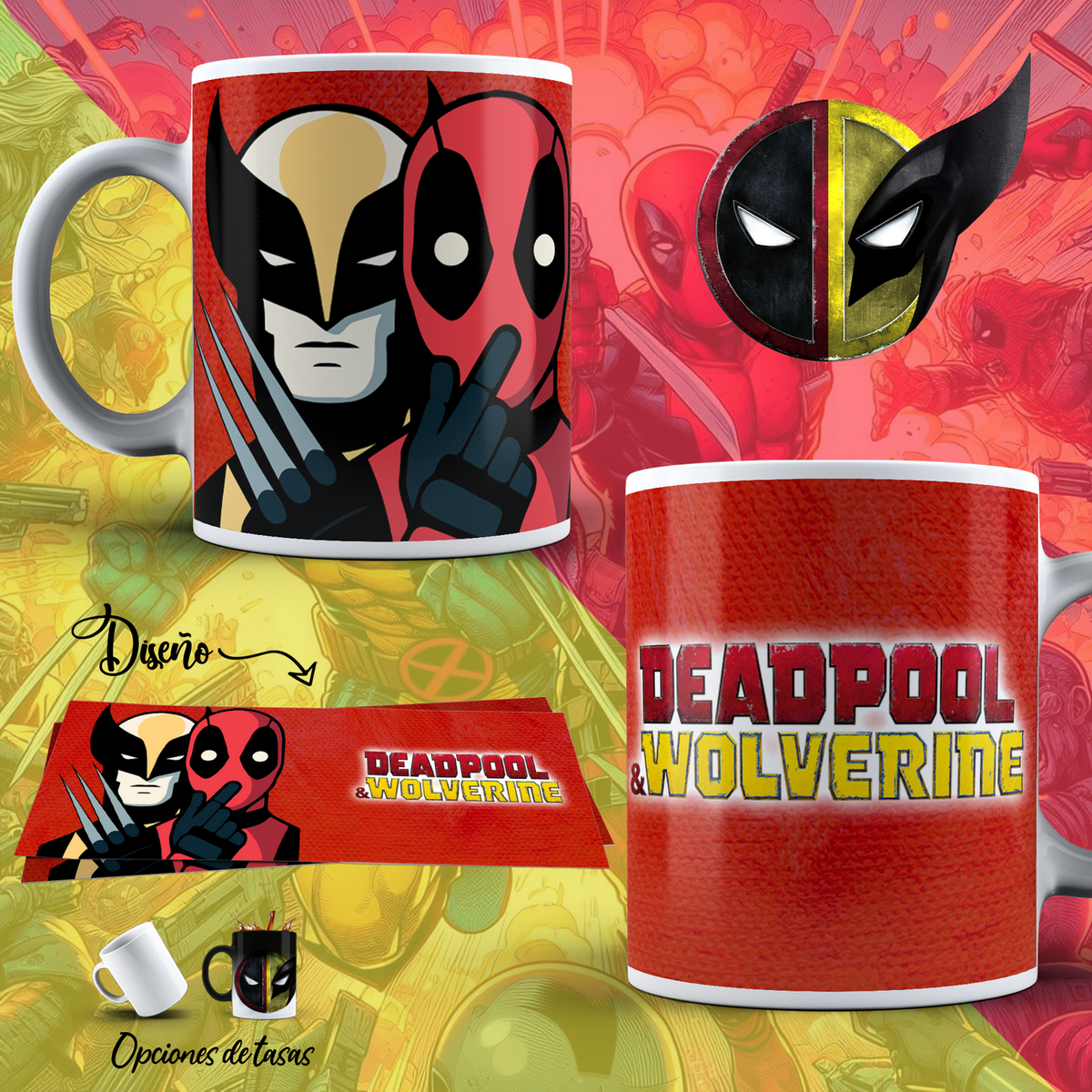 Tazas de Cerámica Deadpool y Wolverine.