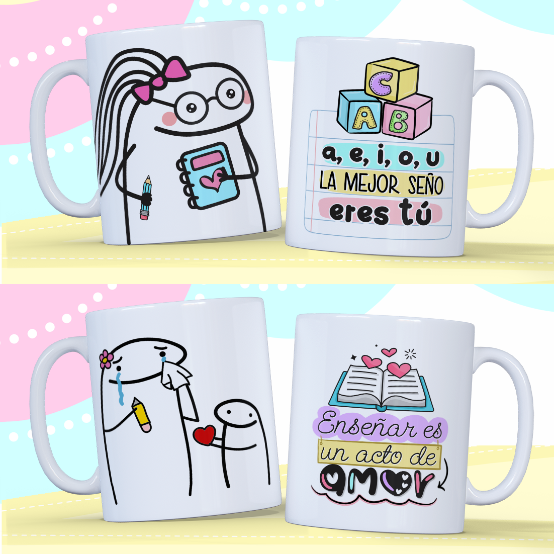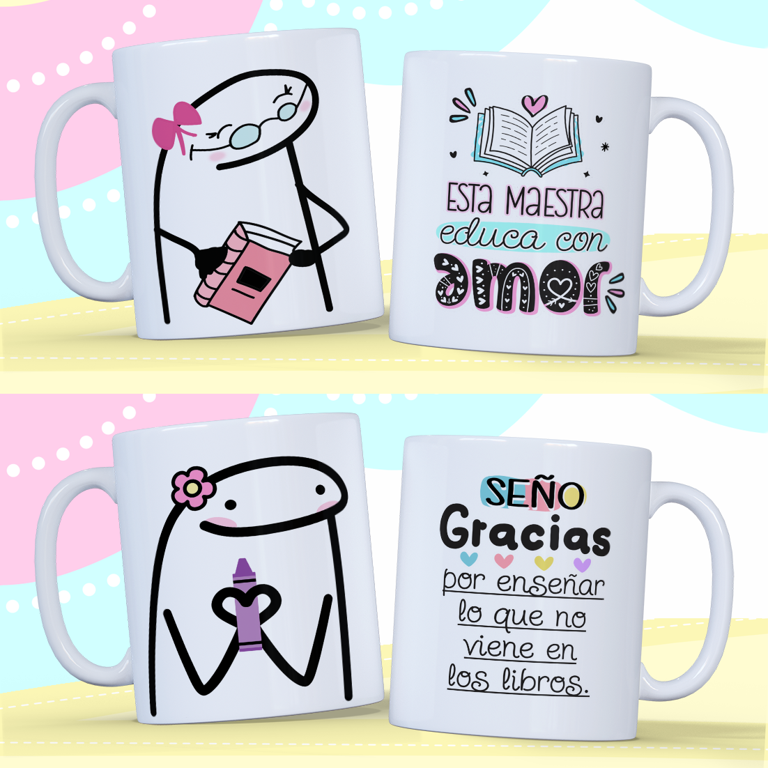 Tazas con diseños del día del Maestro/a!!